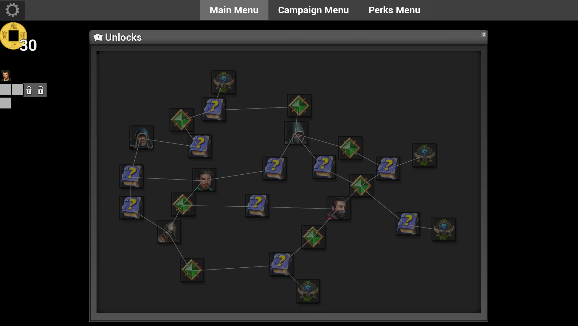 Wouldn’t be a rogue-like without some progression, so check out the perks. On this page you will see classes, passives and skills. But to gain access, you will need to read the hints on the classes to figure out how to unlock them.