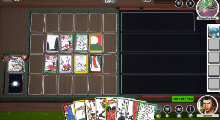 This rogue-like is based on the game koi koi and it uses Hanafuda cards. Match the cards to gain the mana needed to cast spells. The mana gained will be based on the season of the matched cards.